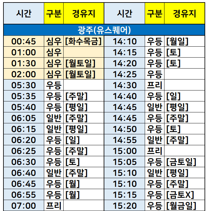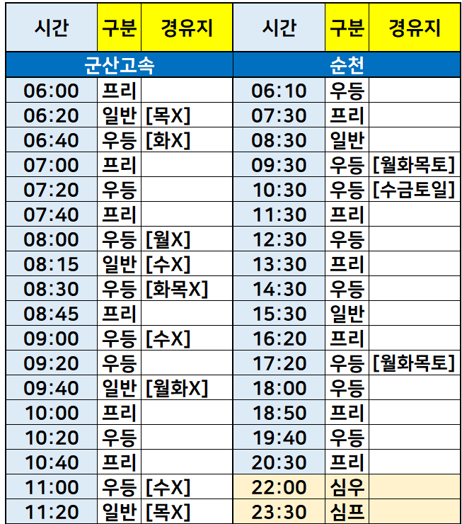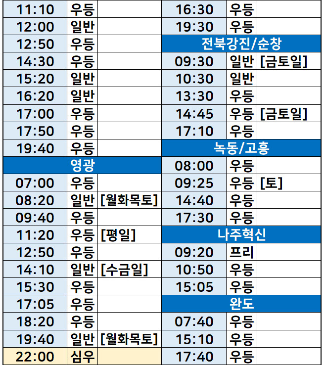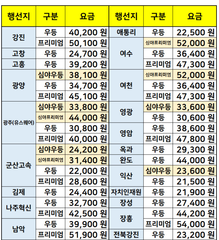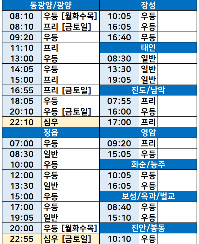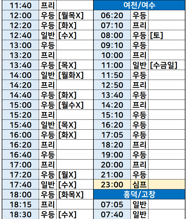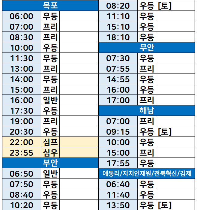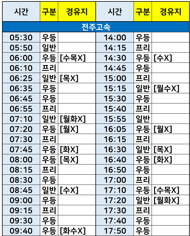 카테고리 없음 2023 서울 센트럴시티 호남선 요금 및 시간표 by 언아맘 2023. 9. 16. 반응형 <호남선 고속버스 요금표> <서울 센트럴시티 - 광주 유스퀘어 시간표> <서울 센트럴시티 - 전주 터미널 시간표> <서울 센트럴시티 - 군산, 순천, 여천, 여수, 흥덕, 고창 시간표> <서울 센트럴시티 - 익산, 남원, 목포, 무안, 해남 기타 시간표> 반응형 공유하기 게시글 관리 월천댁 저작자표시 (새창열림)