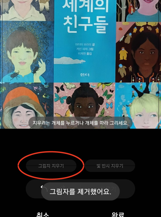 4. 마지막 그림자 지우기가 나오는데 터치하면 그림자가 인식되는 부분이 자동으로 제거가 됩니다.