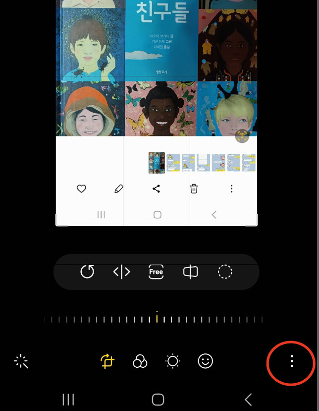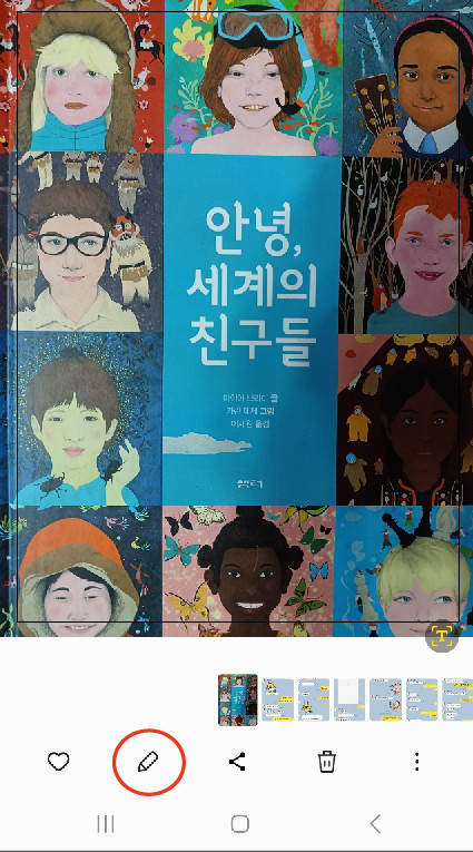 1. 일단 사진을 찍었는데 그림자가 생겼습니다. 그러면 갤러리로 들어가서 방금 찍은 사진을 열고 좌측에서 두번째 연필모양을 터치합니다.