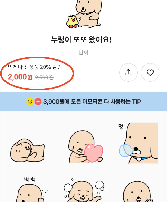 두번째, 카카오이모티콘 직접사지 말고 20% 세일 가격으로 사세요.