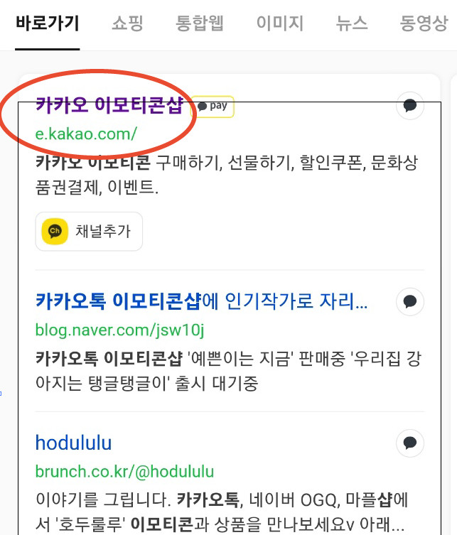 3.카카오이모티콘샵을 누르면 상단에 사진처럼 바로가기에 카카오이모티콘샵이 뜹니다.