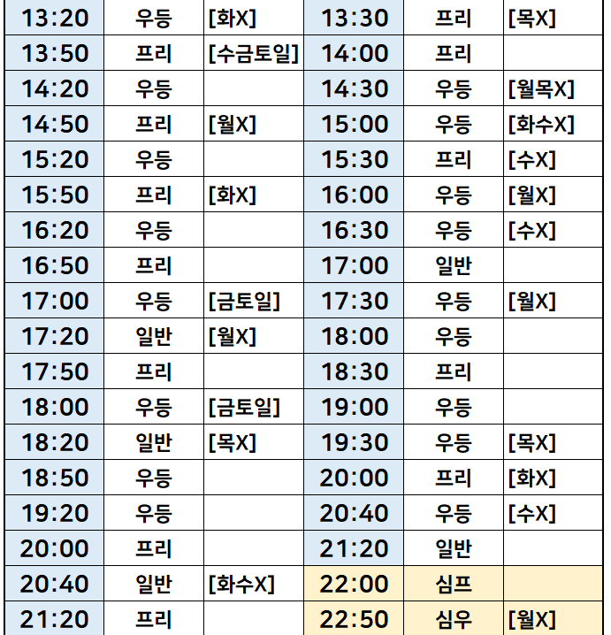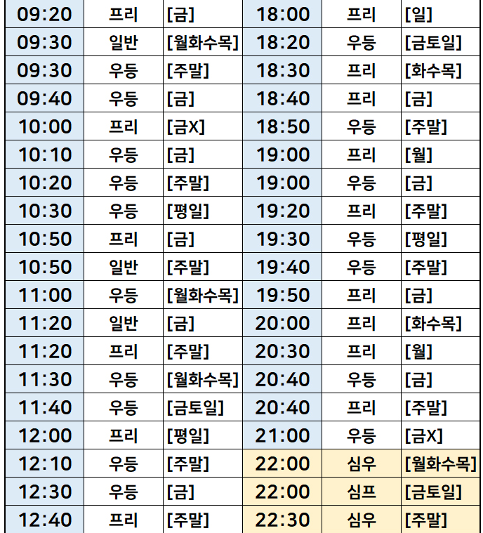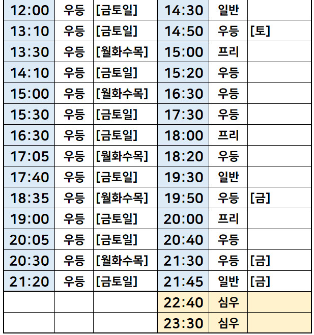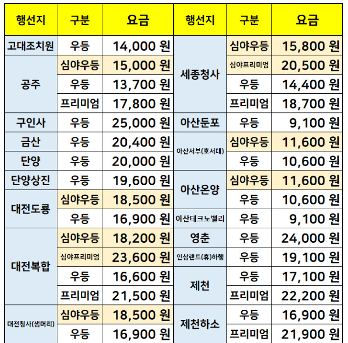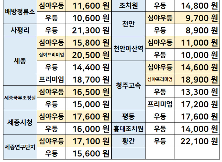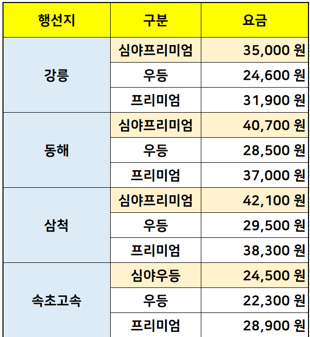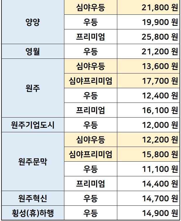강원도 요금표