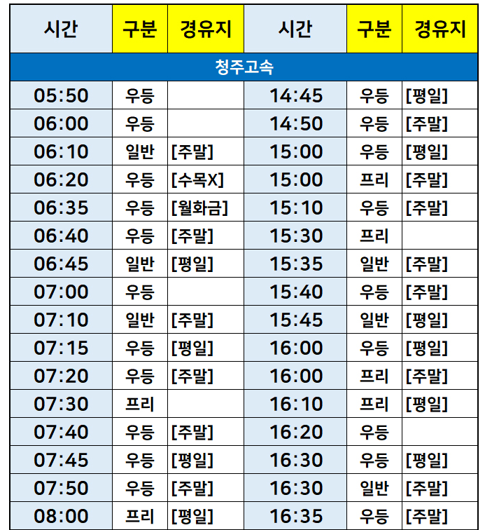 서울->청주