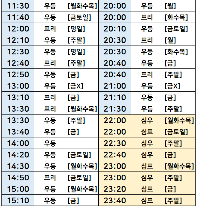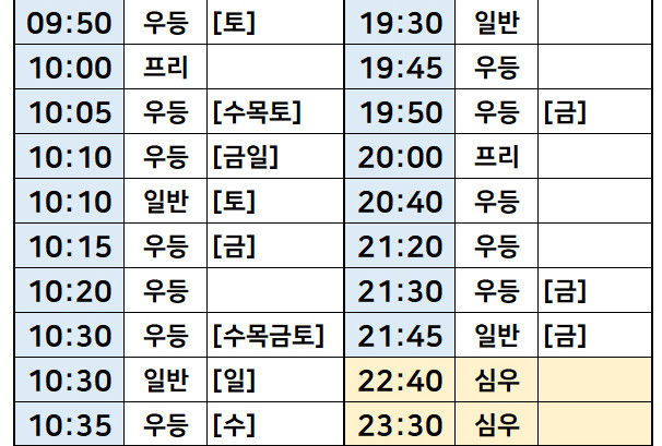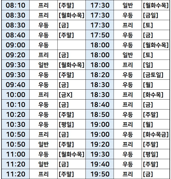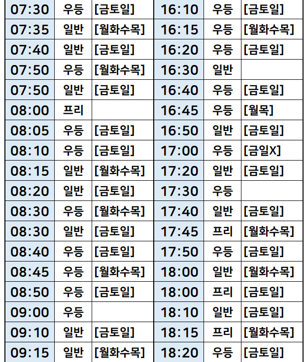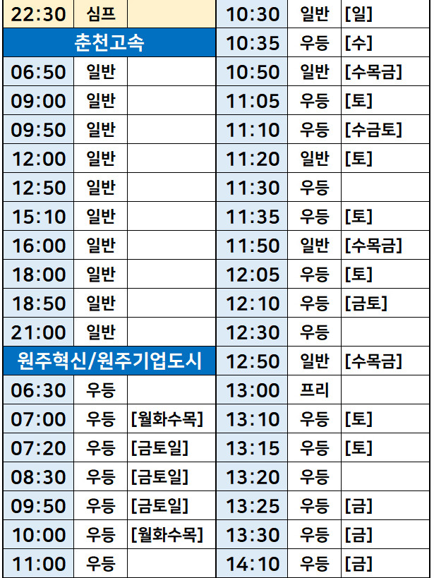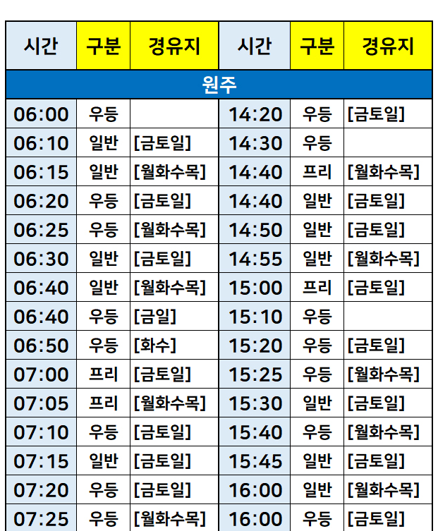 서울->강원도 원주 버스 시간표