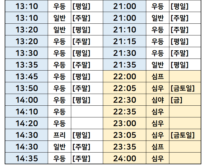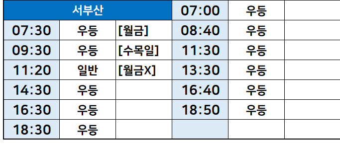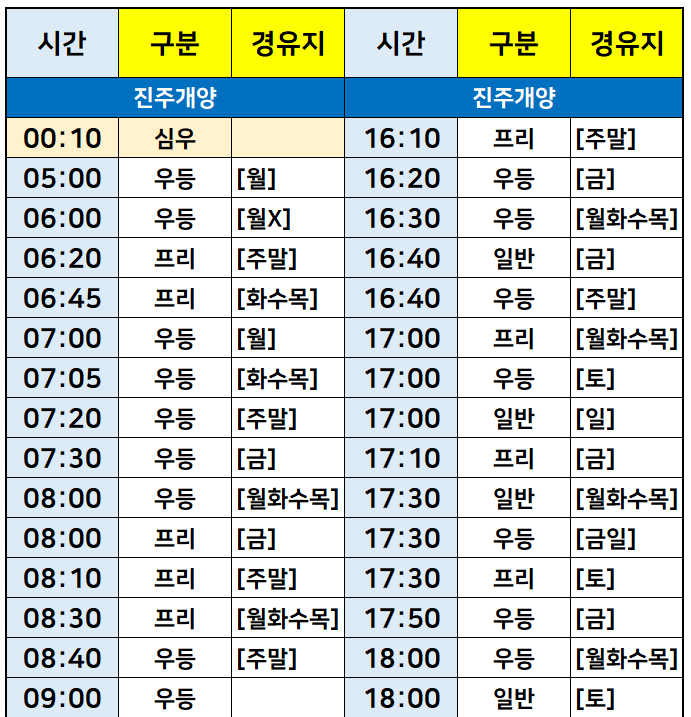 서울->경상도 진주 시간표