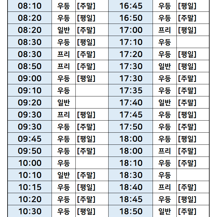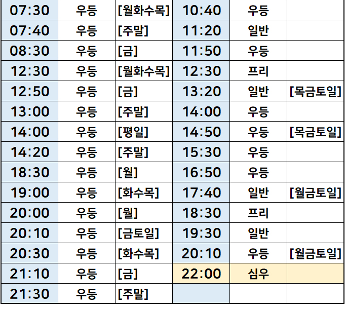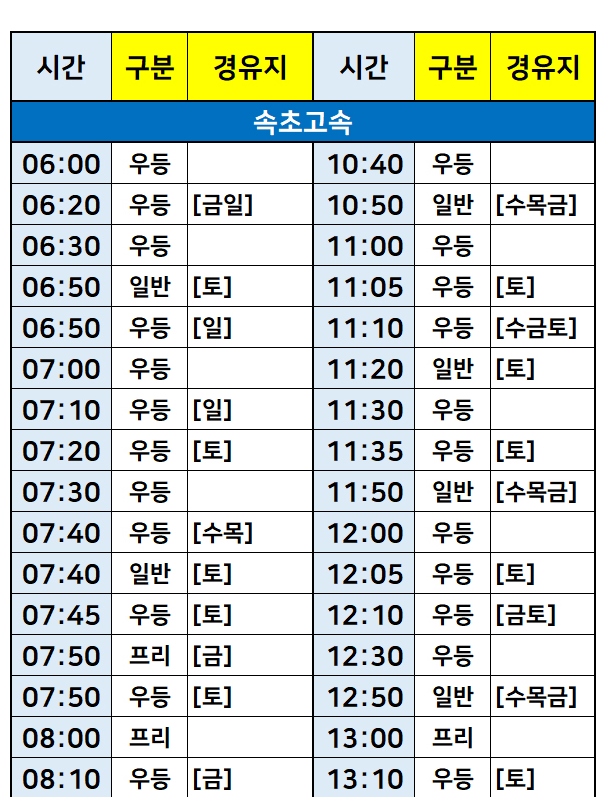 서울 -> 강원도 속초 시간표