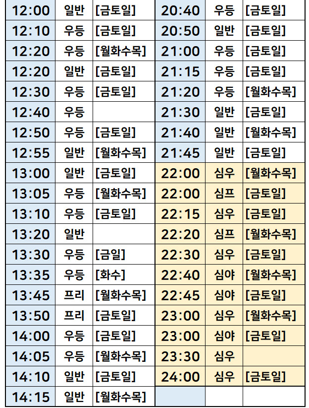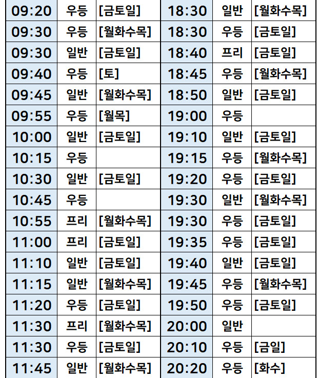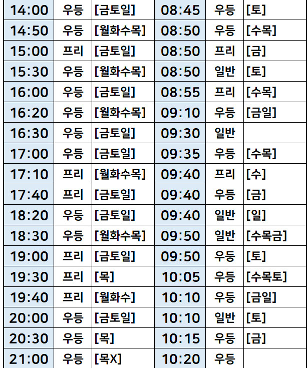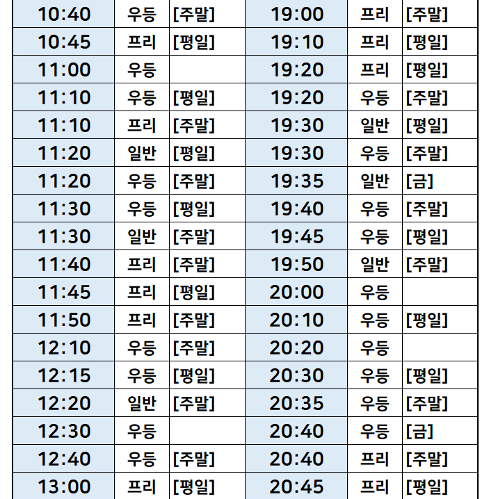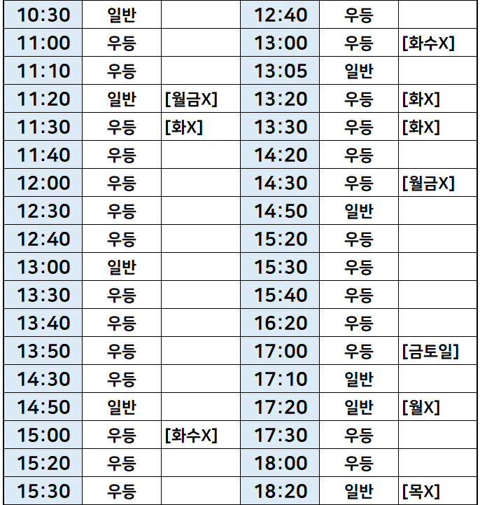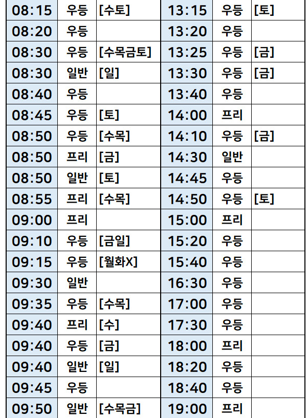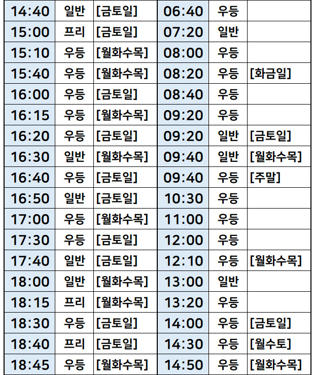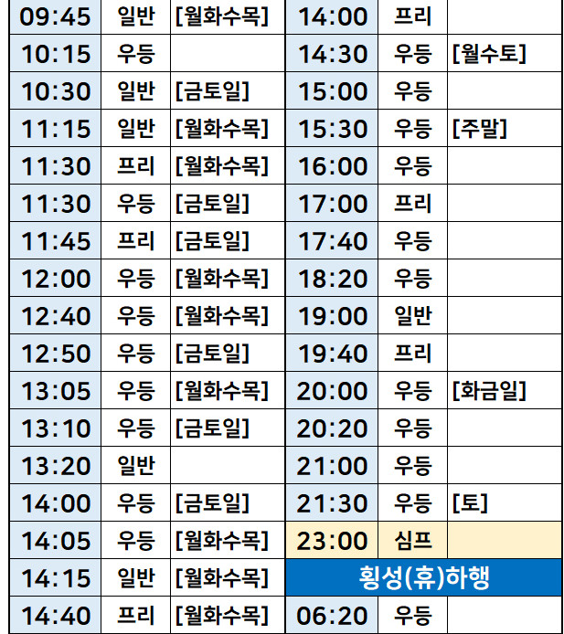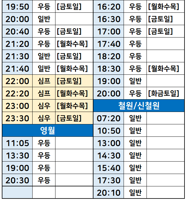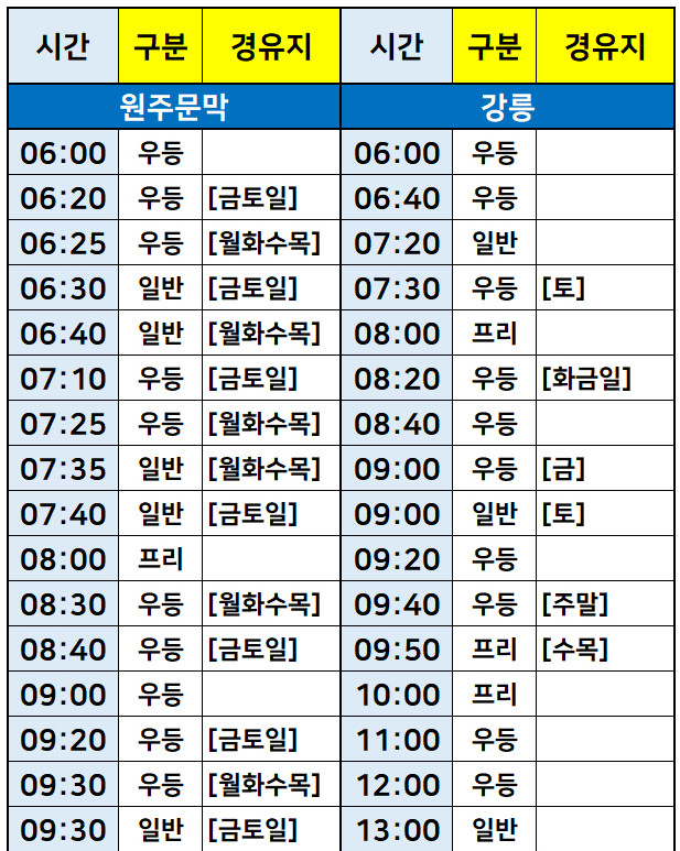 서울-> 원주문막, 강릉, 횡성, 영월, 철원