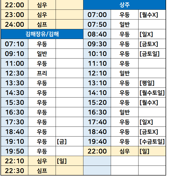 서울->부산, 서대구, 동대구, 김해, 상주