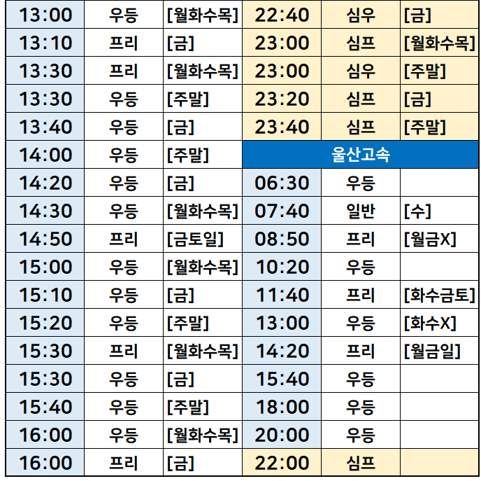 서울-> 진주개양, 울산