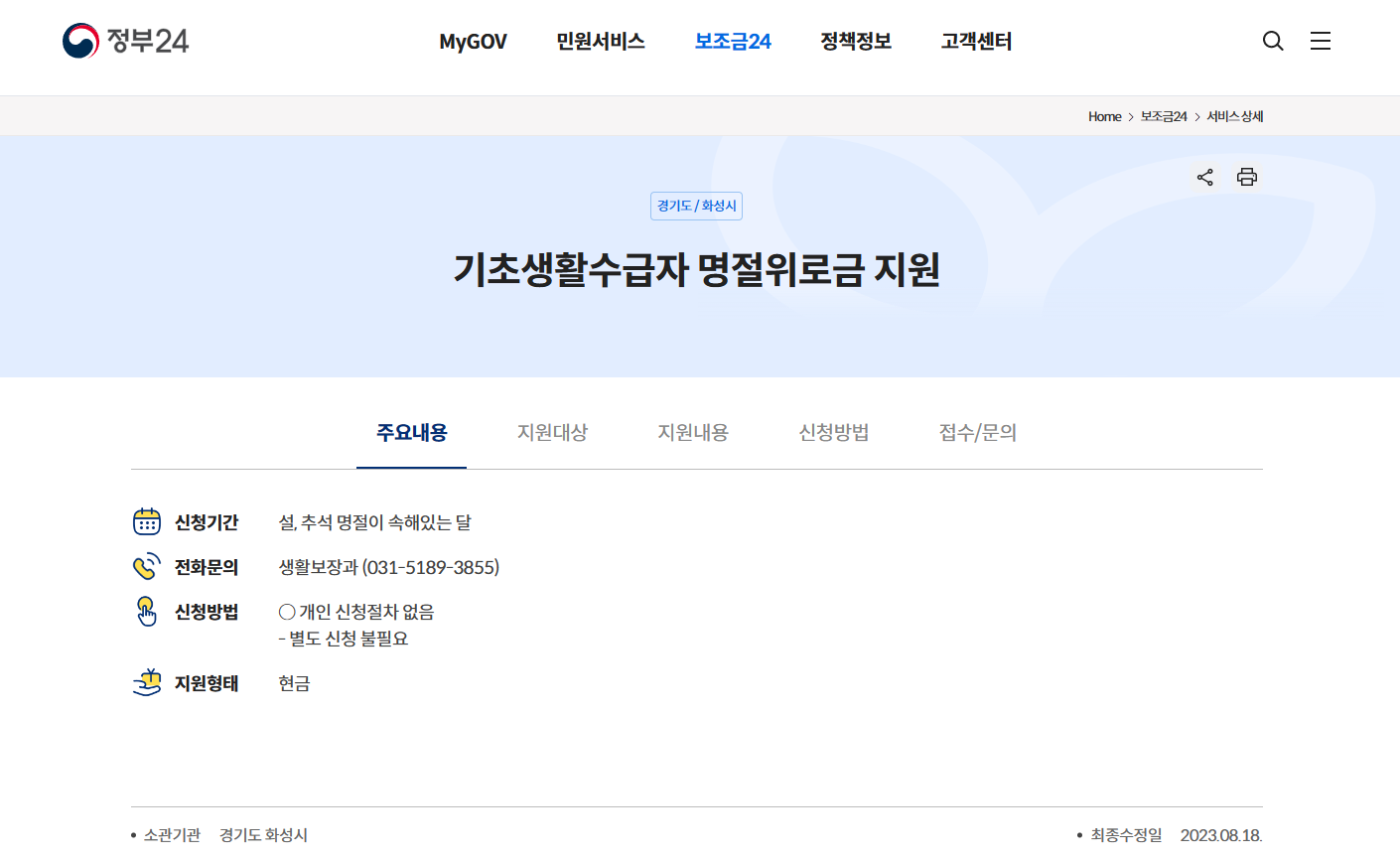 참고로 지원내용에 따라 신청방법이 다를 수 있으며 주소지 관할 주민센터에 문의하시거나 직접 방문해서 신청해야 하는 경우도 있으니 참고하시기 바랍니다.