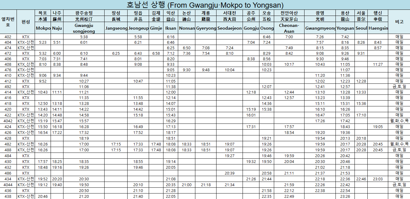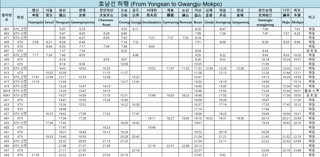 카테고리 없음 2023 KTX열차 호남선 상행, 하행 시간표 안내 by 언아맘 2023. 9. 19. 반응형 이달에 벌써 추석명절로 열차 이용하신분들 많으실텐데요. 예매하시거나 열차시간 다시 한번 확인해보시고 안전하게 고향 다녀오세요. 반응형 공유하기 게시글 관리 월천댁 저작자표시 (새창열림)